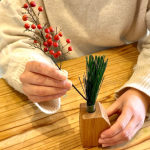 木目が美しい木製「お正月一輪挿し」づくり